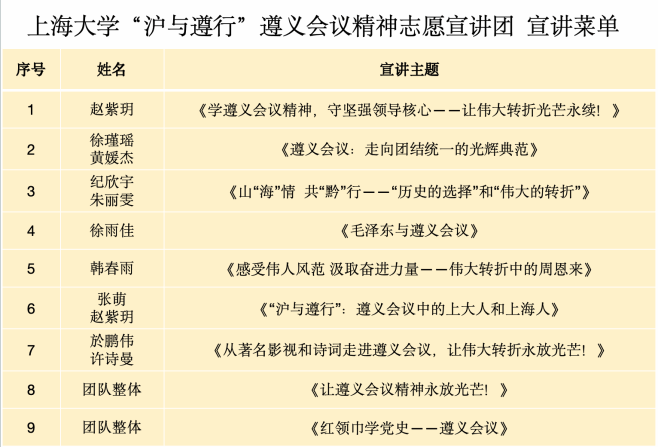 团队成员精心筹备、积极宣讲,共打造《山“海”情 共“黔”行——“历史的选择”和“伟大的转折”》《红领巾学党史——走进遵义会议》等 10个专题宣讲课程和1个视频微团课。